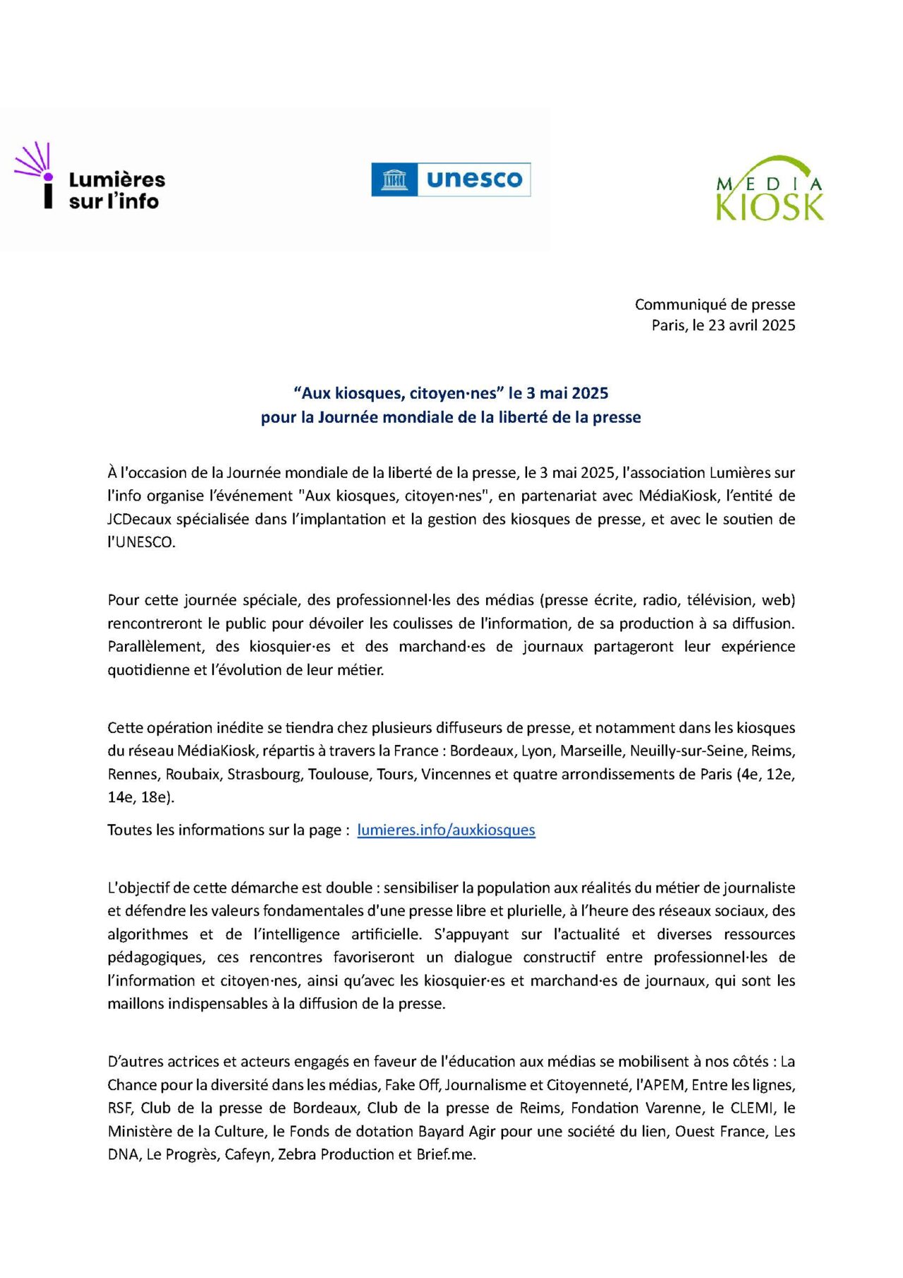 “Aux kiosques, citoyen-nes” le 3 mai 2025 pour la Journée mondiale de la liberté de la presse.