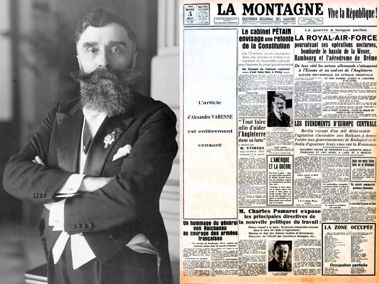 Pour rappel « La Montagne » est un de ces quotidiens régionaux le plus censuré au cours de cette période. Alexandre Varenne va résister, jongler entre respect de l’autorité et désobéissance civile, naviguer à vue entre les forces présentes en les mettant parfois dos à dos, forcer des portes avec sa plume et sa personnalité.