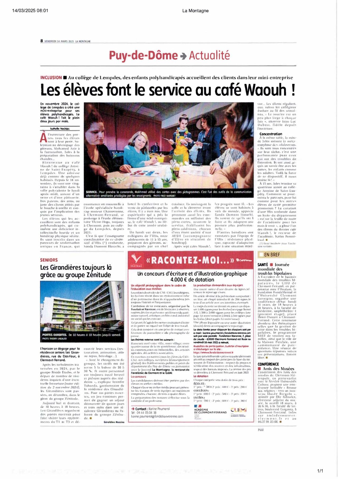 Il concerne les enfants des écoles de CM1-CM2, les collégiens, les lycéens (d’enseignement général) des établissements publics et privés en partenariat avec les rectorats des Académies de Clermont-Ferrand et de Limoges, du CLEMI du Puy-de-Dôme et de la Haute-Vienne ainsi que le Journal La Montagne et Le Populaire du Centre.